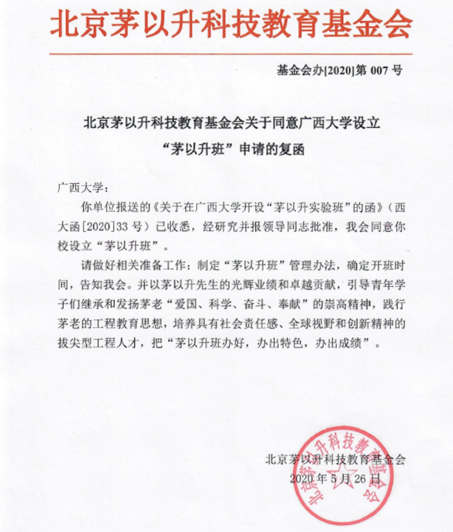 喜讯!近日,从茅以升科技教育基金会传来好消息,贝博官网设立“茅以升班”的申请已经基金会审议通过!