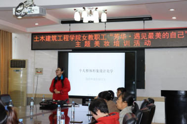 活动伊始,毛燕女士结合高校女教职工的特点,围绕职业女性的个人整体形象设计美学,从日常妆容的基础知识、皮肤的日常护理、服饰搭配技巧等方面展开介绍。