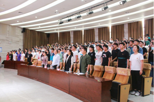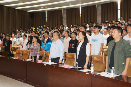 仪式伊始,学院党委书记戴永恒以“不忘初心使命,坚定理想信念,积极投身党的事业伟大工程”为题,认真接受党组织的考验,将实现中华民族伟大复兴为己任,增强做中国人的志气、骨气、底气。