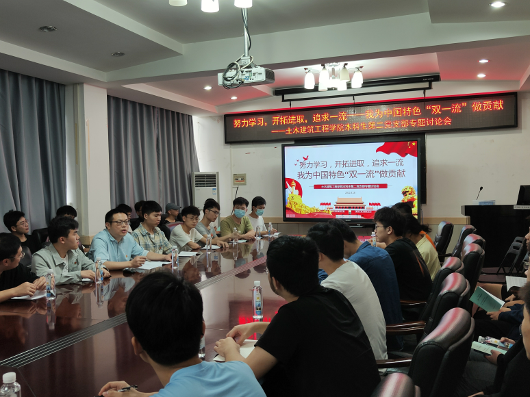 会上,支部书记秦岭与支部党员、入党积极分子深入学习了校党委书记王乃学在“bb贝博betball官网登录土木工程世界一流学科建设动员大会”上的讲话精神,以及“创新创造、奋勇争先、全面一流”的bb贝博betball官网登录“双一流”精神,并围绕“学生党员如何为中国特色‘双一流’做贡献?”展开了专题讨论。