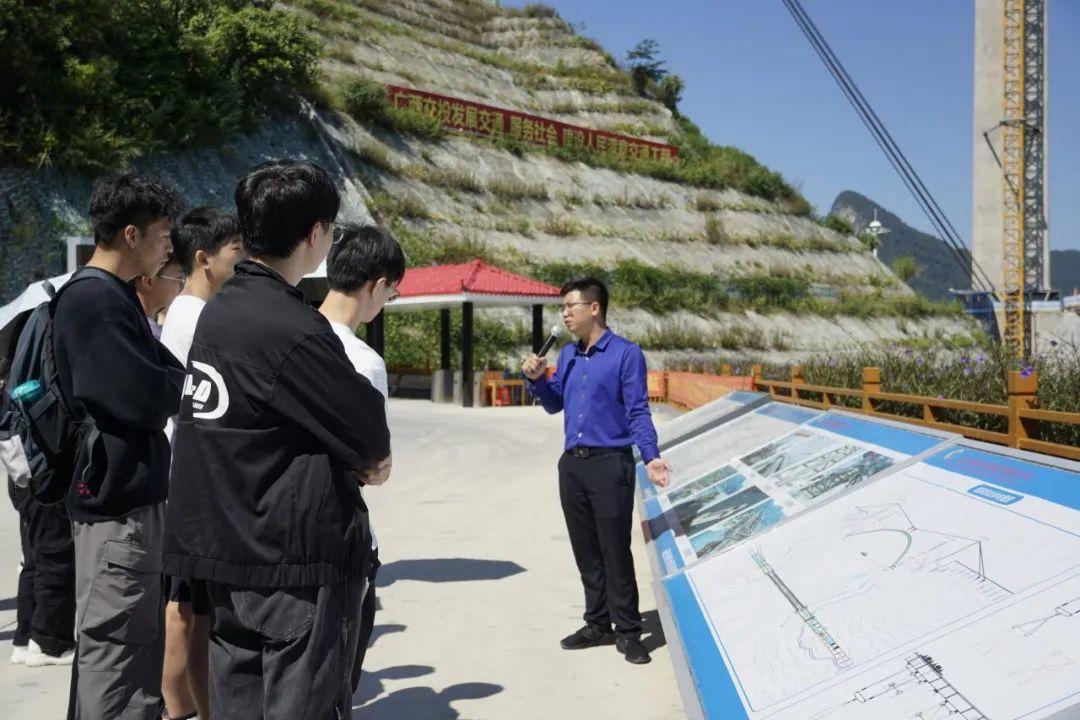 此次调研活动,师生们走进天峨龙滩特大桥项目现场,通过亲看、亲听、亲历,同学们感受到了将自身专业知识应用于国家发展战略所带来的山河巨变,感受到大桥建设者们实事求是、攻坚克难的大国工匠精神。同学们纷纷表示,要以郑皆连院士等老一辈土木人为榜样,扎根工程建设一线,潜心钻研,勇攀高峰,把论文写在祖国大地上,为祖国建设建功立业。