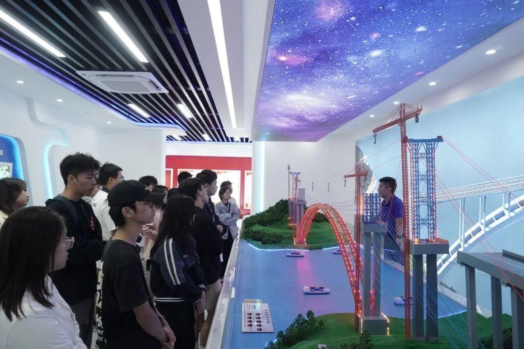 在天峨龙滩特大桥施工现场,大桥项目部领导向师生们介绍了大桥建设基本情况、最新进展,以及钢管拱桁加工与制作、钢管拱桁安装、外包混凝土浇筑等施工工艺。大桥建设者们将大桥钢结构制造精度控制在毫米级,大桥主桥拱桁实现高精度合龙,龙口偏差小于等于2毫米、拱轴线偏差小于10毫米、高程偏差小于30毫米。在交流环节,老师同学们涌跃提问,探究了许多关于天峨龙滩特大桥的工程技术问题。