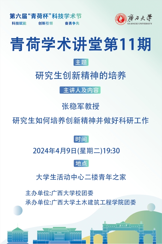 4月9日晚19:30,由贝博官网团委承办的bb贝博betball官网登录第六届“青荷杯”科技学术节青荷学术讲堂第11期在大学生活动中心二楼青年之家开展,贝博官网张稳军教授作了题为“研究生创新精神的培养”的学术讲堂,本次学术讲堂由贝博官网团委副书记潘桂祯老师主持。